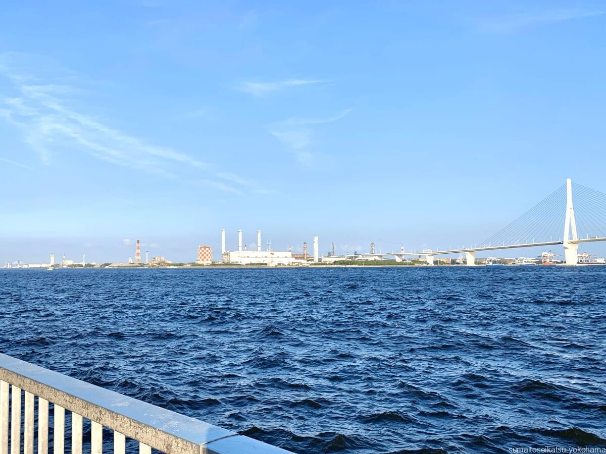 末広水際線プロムナードは、鶴見区の東京湾が広がる海と鶴見つばさ橋が一望できる場所。