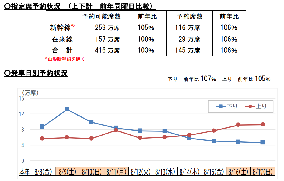2025「お盆期間」の指定席予約状況のお知らせ – JR東日本 ニュースリリース