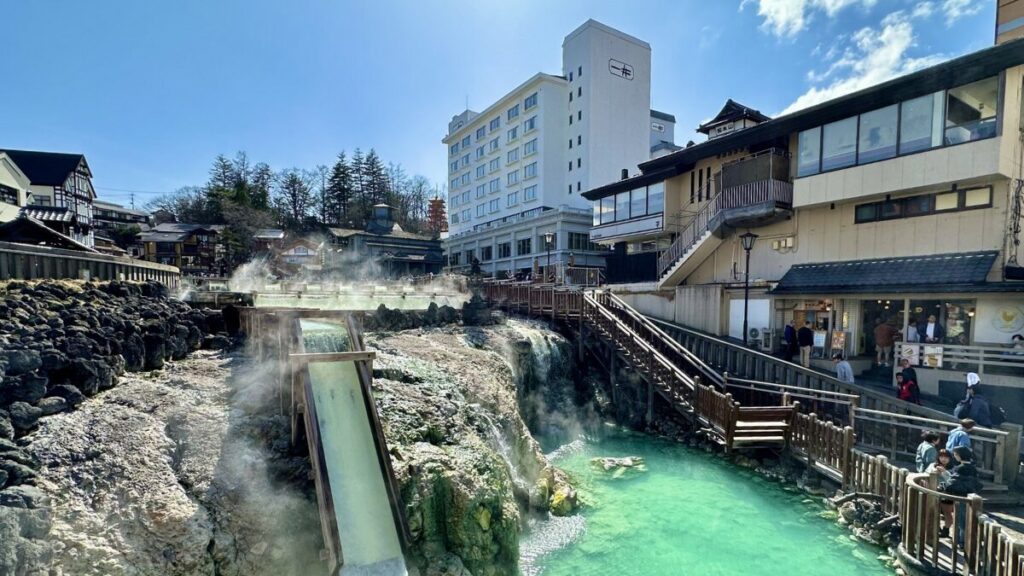 草津温泉は、群馬県吾妻郡草津町にある日本一の自然湧出量の温泉地。