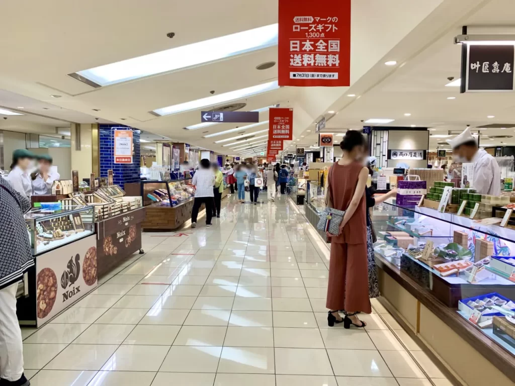 高島屋の地下食料品フロアは約5,000㎡という広大な面積を誇り、食べ物の選択肢が豊富です。