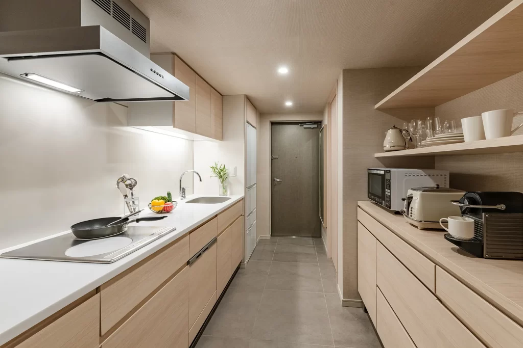 全室キッチン&洗濯乾燥機付き!住まいのようにくつろげる客室