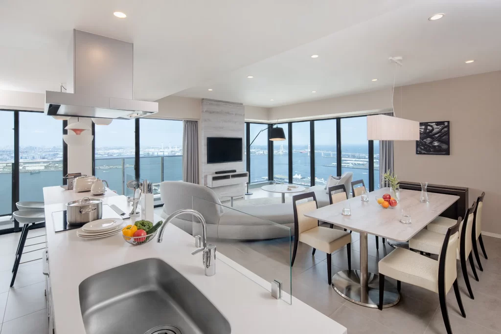 見どころは、客室やパブリックスペースから横浜を360°一望できるパノラマビューです。