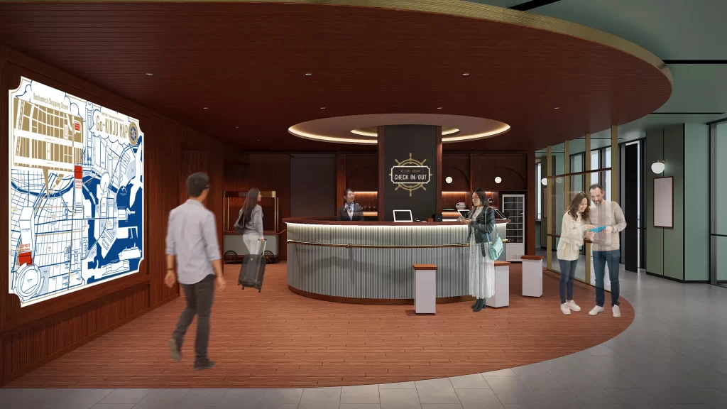 ビリヤードやテーブルゲームを楽しめる「Play Zone」や港町の文化に触れられるギャラリー、洋画が流れるシアタースペースなど、クルーズ船内での滞在のように思い思いの時間を過ごせます。