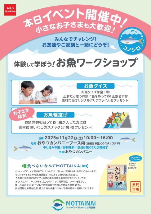おやつカンパニーは、楽しく学べるワークショップ「お魚クイズ」を開催します。