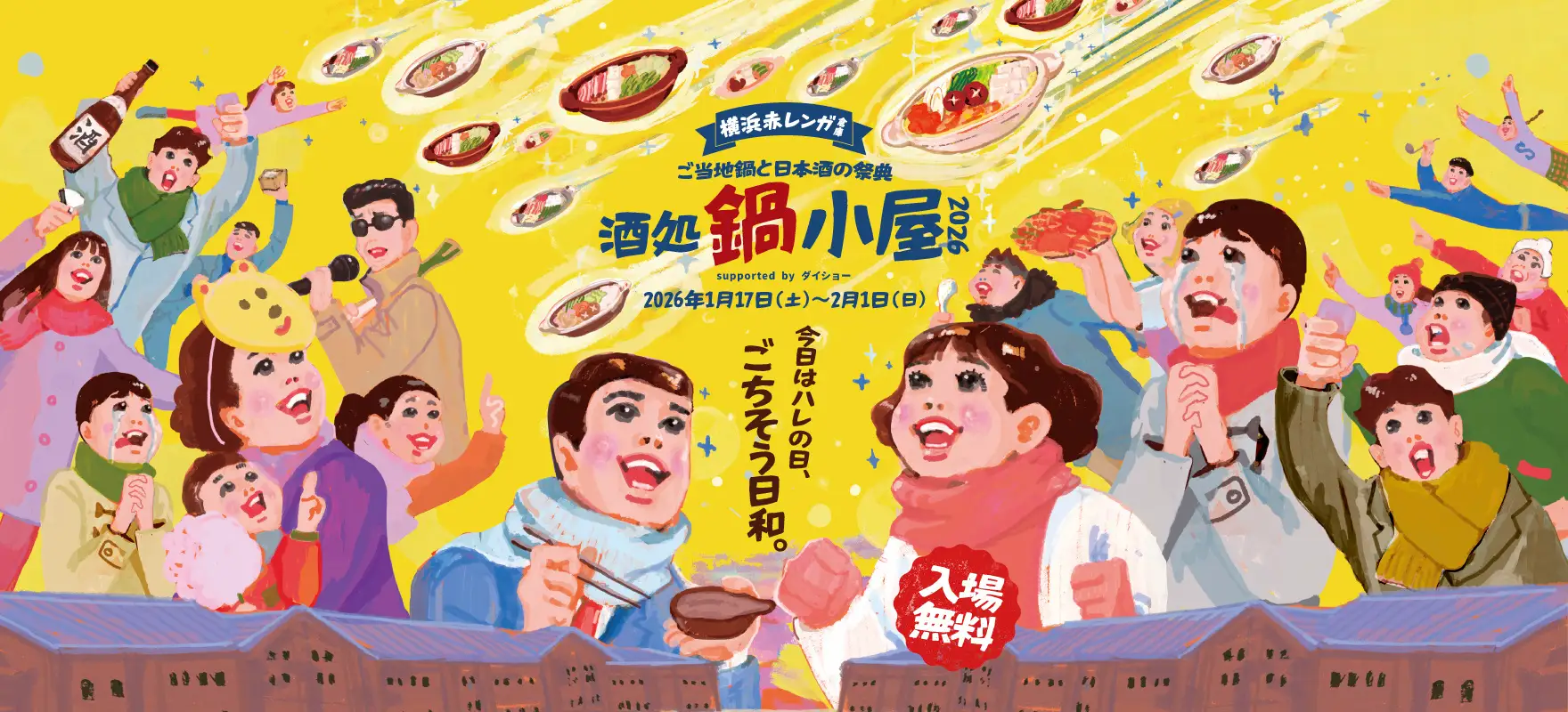 冬の横浜にぴったりな、鍋と酒とエンタメがそろった期間限定イベント『酒処 鍋小屋 2026 supported by ダイショー』が横浜赤レンガ倉庫 のイベント広場で開催されます。