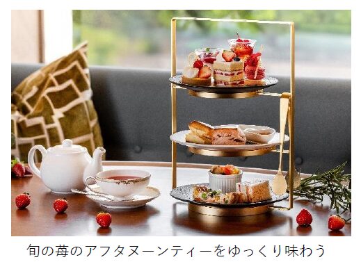 旬の苺を贅沢に使用したスイーツや、ホテルメイドのセイボリーを格調高いティースタンドでご用意。ドイツの老舗「ロンネフェルト」紅茶やコーヒーと共に、優雅な午後のひとときをお楽しみください。