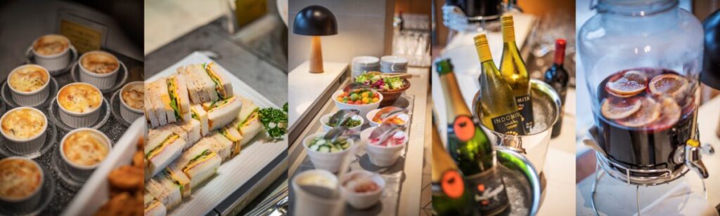 ミニあらびきフランス/ダノワーズフレーズ/サラダバー/サンドウィッチ/ビーフシチュー花咲ガニ味噌汁/ドリア(1、2月)/筍ご飯(3月、4月)/フライドポテト/苺/オードブル2種