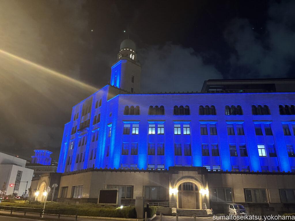 そして、ふと見上げると「横浜三塔」のうちの「クイーン」(横浜税関)がライトアップされているのが見えました。さらに奥を見ると「キング」(神奈川県庁)も同じように輝いています。