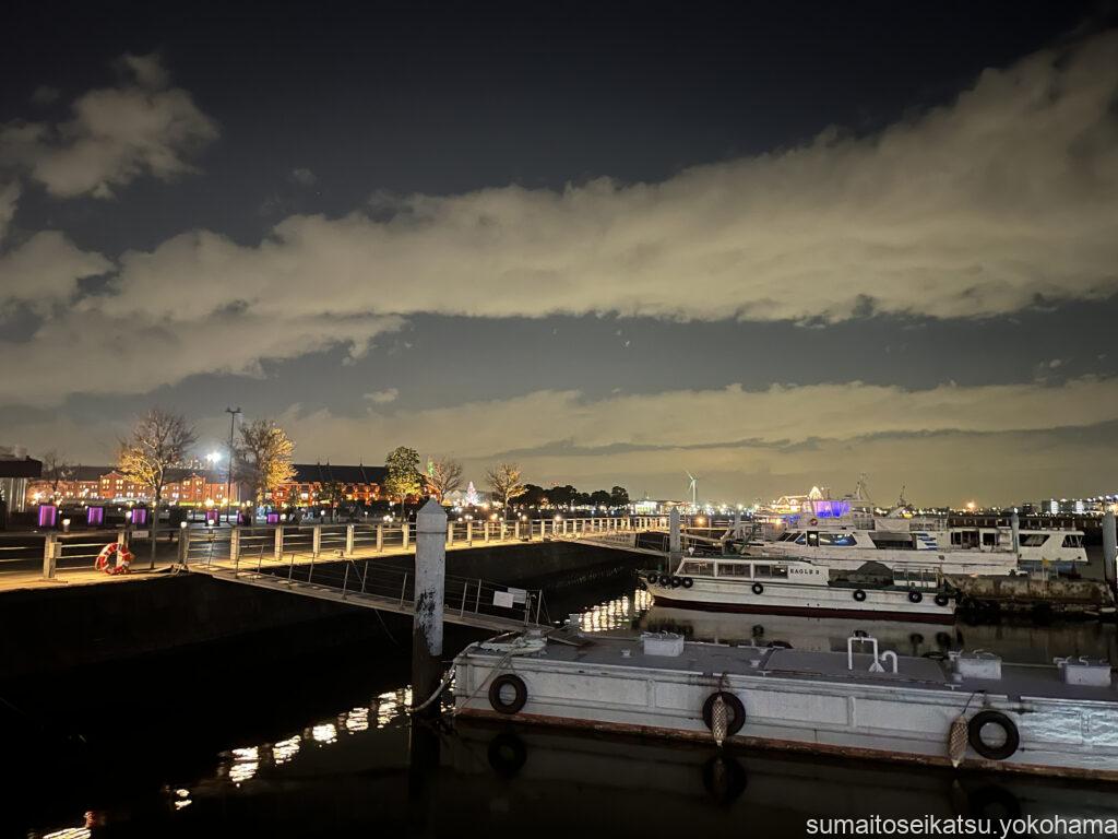 ここはライトアップこそ控えめですが、大さん橋や赤レンガ倉庫、みなとみらいの夜景を一望できる絶好のビュースポット。静かに夜景を楽しみたい人には最高の場所です。