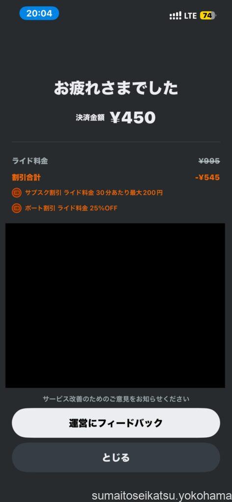 この日はたまたま出発・返却ともに割引対象のポートを使えたので、サブスク料金からさらに割引が適用されました。