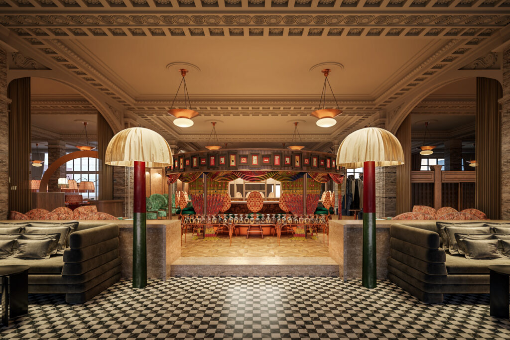 ロビーは劇場の幕、ダイニングは船上のデッキ、 バーは東西の文化が再び交わる実験場として設計いたしました。