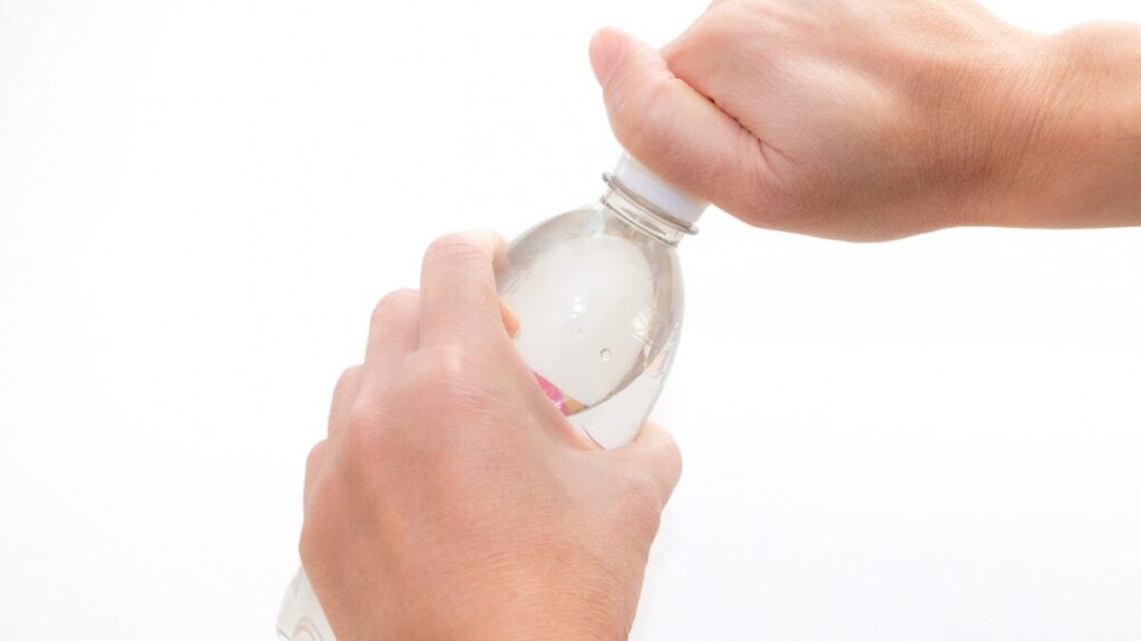 ペットボトルを捨てる際は、まず中を軽くすすぎ、キャップとラベルを外します。外したキャップとラベルは、プラスチック資源として出します。