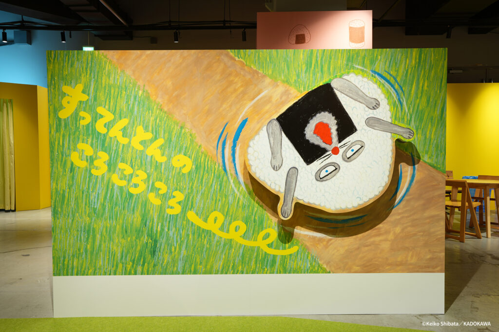 フルーツサンドのパネルから顔やぬいぐるみを出して撮ったり、おにぎりぼうやを転がして楽しんだりできるエリアです。