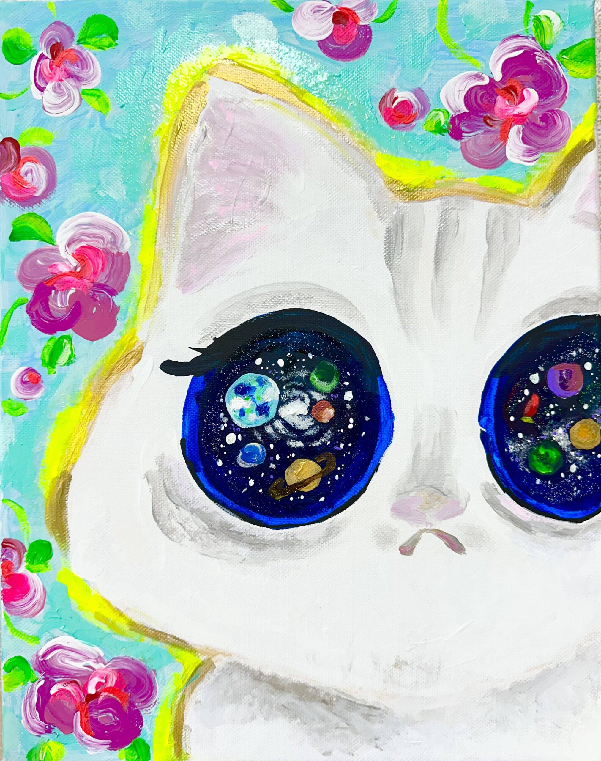 個展のコンセプトは白猫が地球を旅する物語。