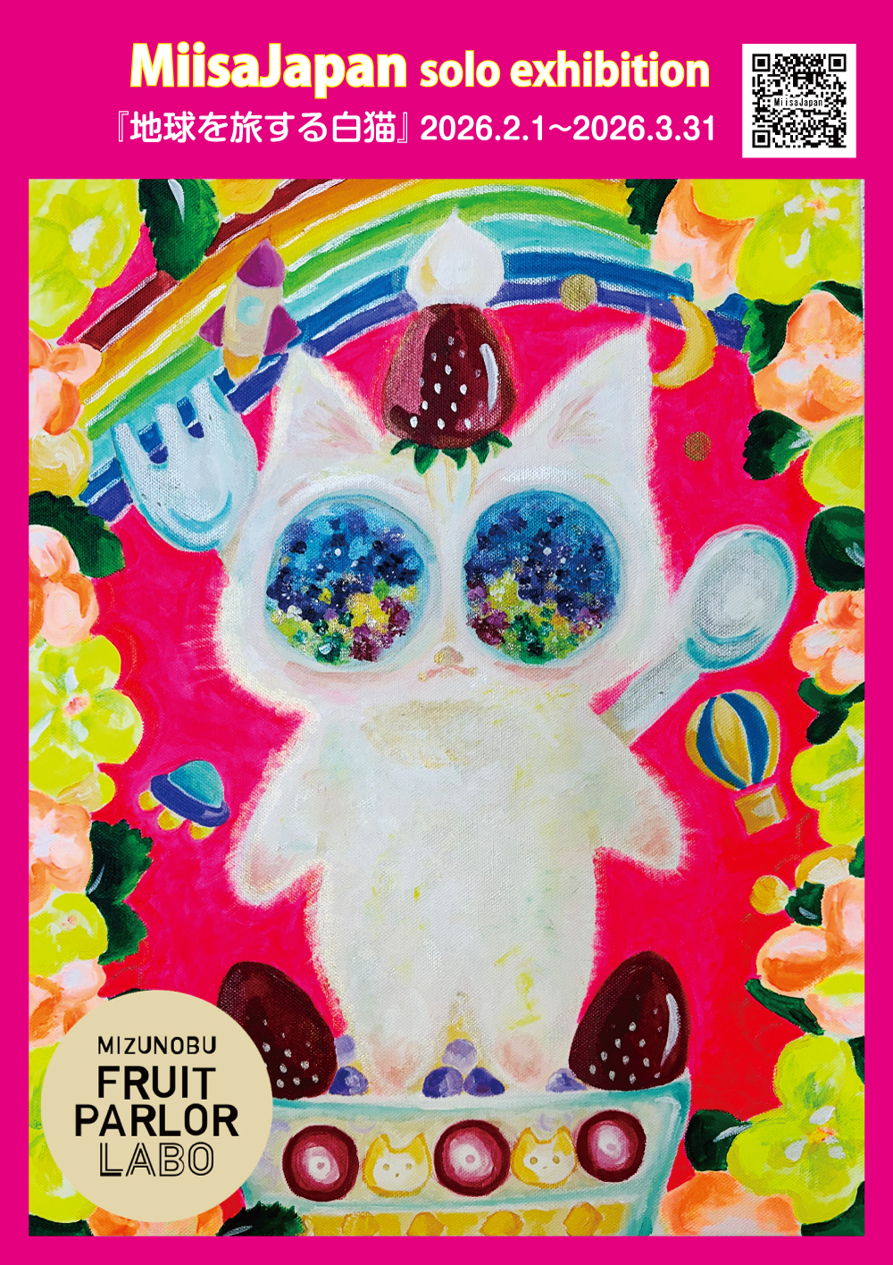 MiisaJapan solo exhibition『地球を旅する白猫』2026.2.1-3.31 | 水信フルーツパーラーラボ