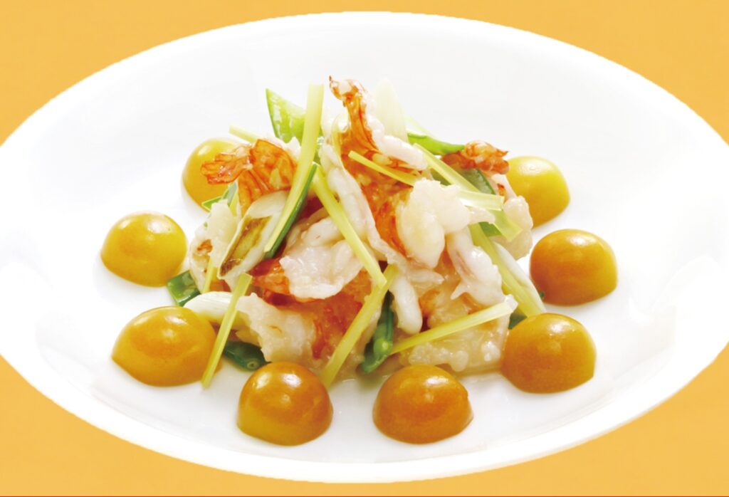 創業明治25年の広東料理の名店萬珍樓では、春節に合わせた特別コースが用意されています。「大海老と金柑の祝い膳」は、海老と金柑を組み合わせた華やかな料理です。海老は日本でも「腰が曲がるまで長生きする」という縁起物ですが、中華圏では生命力の象徴でもあります。金柑は文字通り「金の玉」ですから、金運アップの意味が込められているわけです。