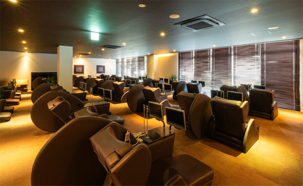 無料で利用できるリラックスルームには、ゆとりあるサイズのリクライニングチェアを完備。